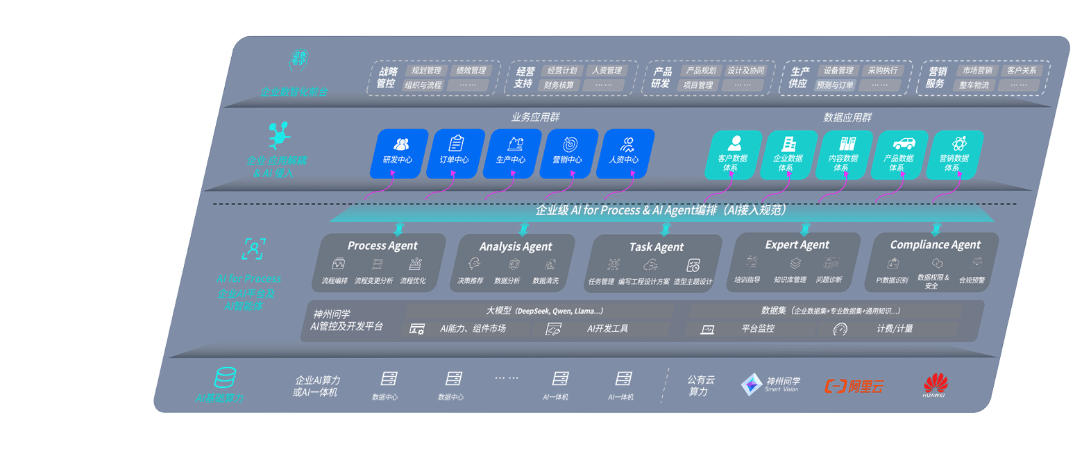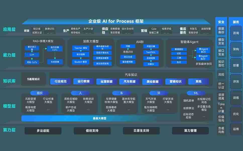 端到端的一站式AI工作空间深度融合了从企业战略规划到日常经营的全流程业务板块,,,,定向解决车企内部领域多、、、、部门多、、、、链条长、、场景碎片化等难题,,,,支持车企快速构建以AI为核心的生产力写作体系,,,实现任务执行与AI能力的无缝集成与交互
